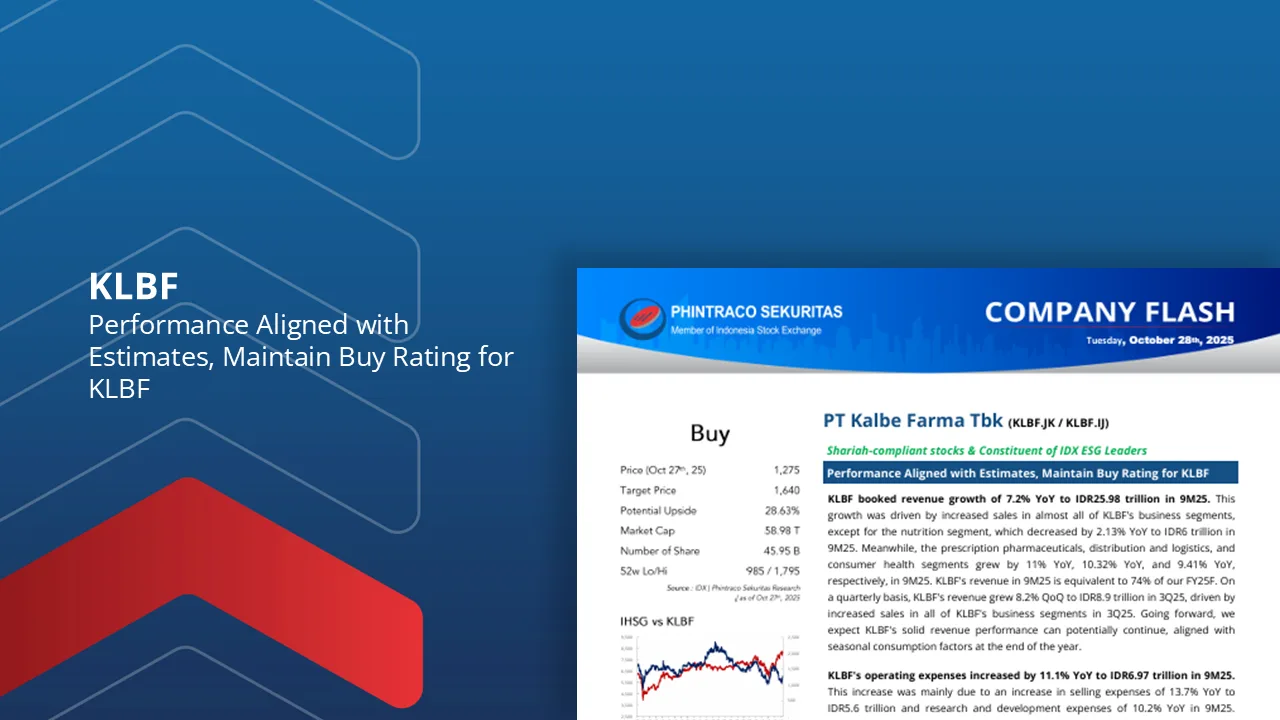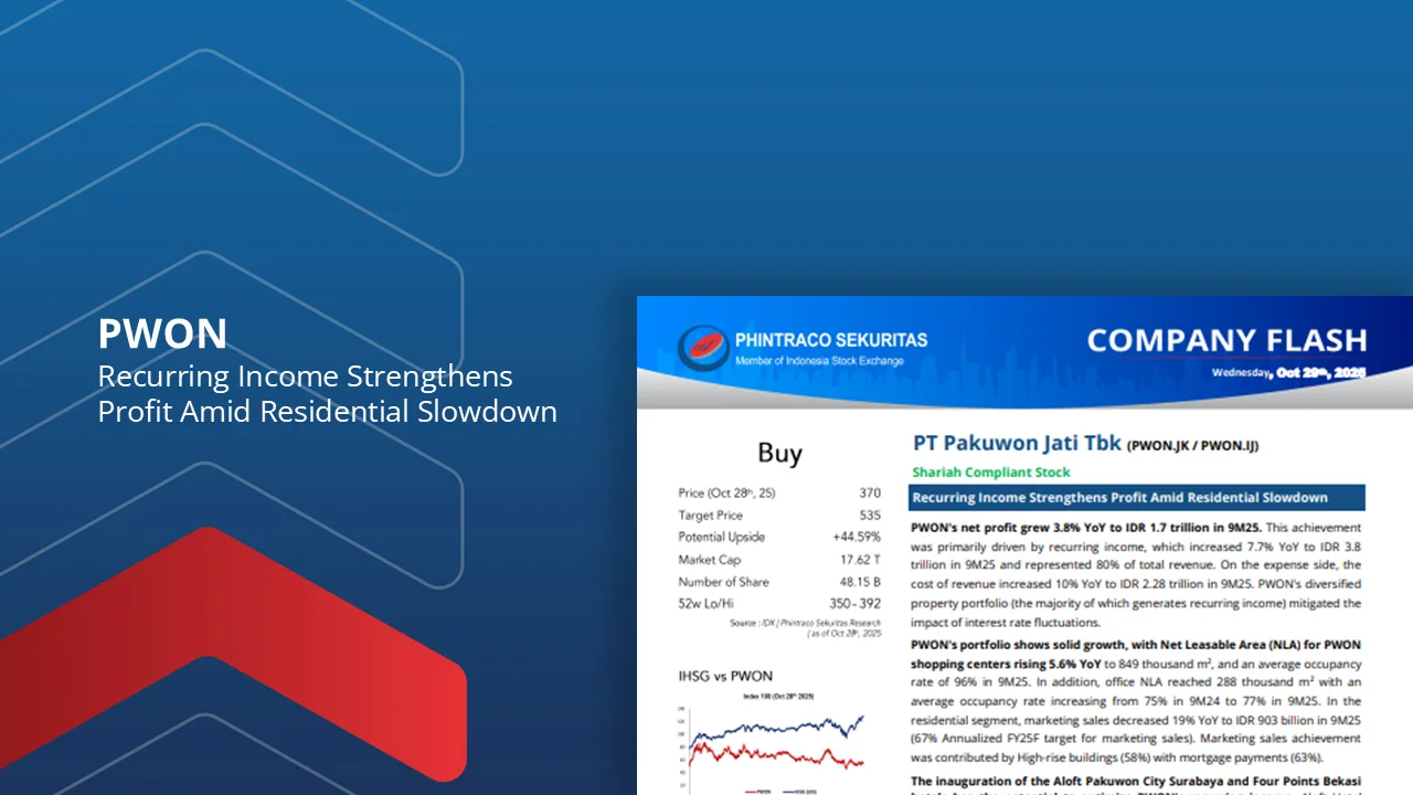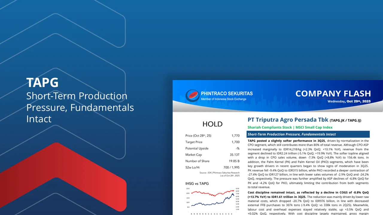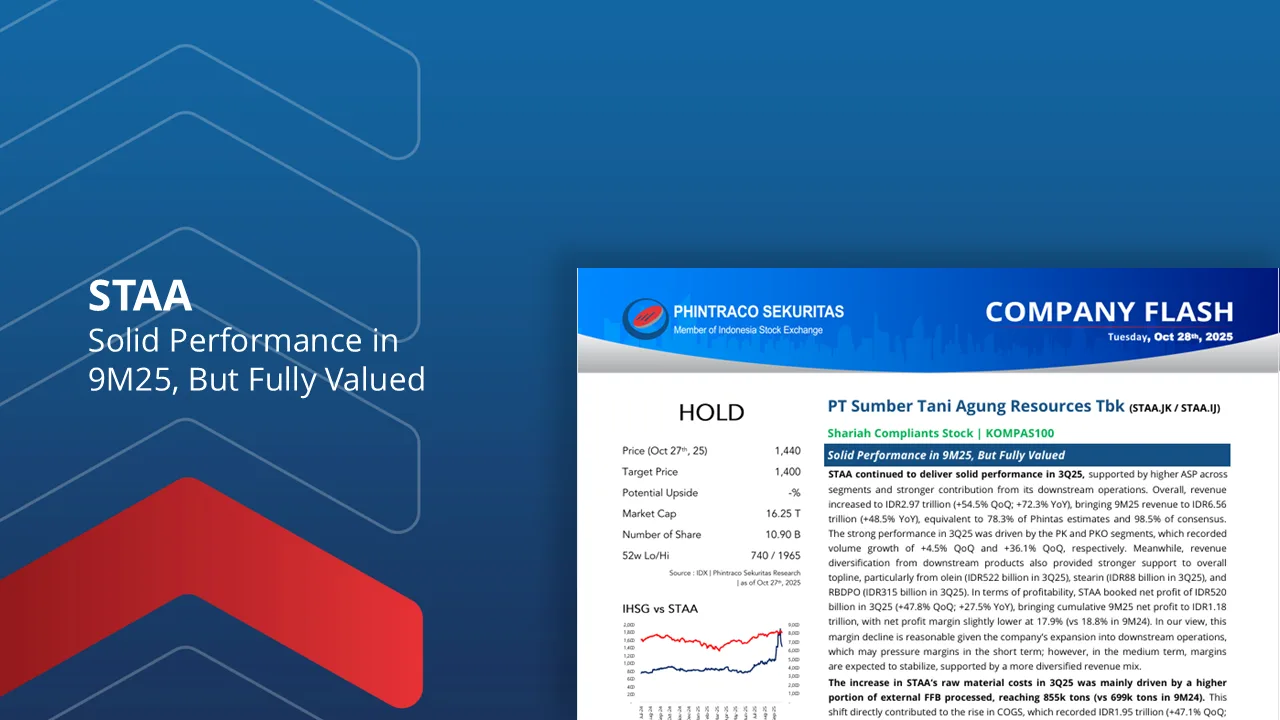 STAA continued to deliver solid performance in 3Q25, supported by higher ASP across all segments and stronger contribution from its downstream operations. Revenue reached IDR2.97 trillion (+54.5% QoQ; +72.3% YoY),...