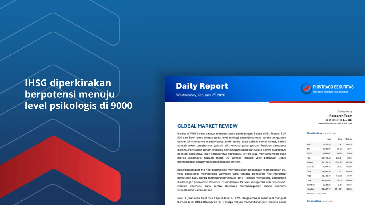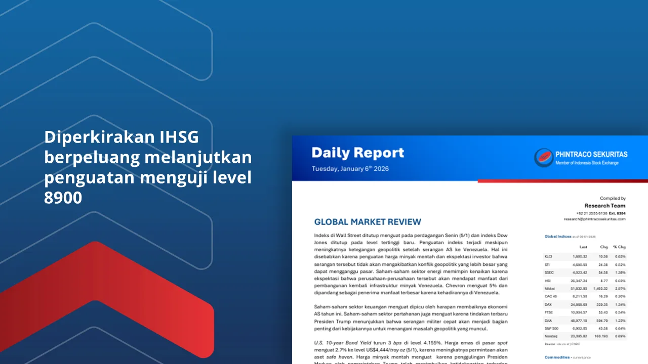 Indeks di Wall Street ditutup menguat pada Senin (5/1). Kenaikan indeks dipicu penguatan harga minyak mentah dan ekspektasi investor bahwa serangan AS terhadap Venezuela tidak akan mengakibatkan konflik geopolitik yang...