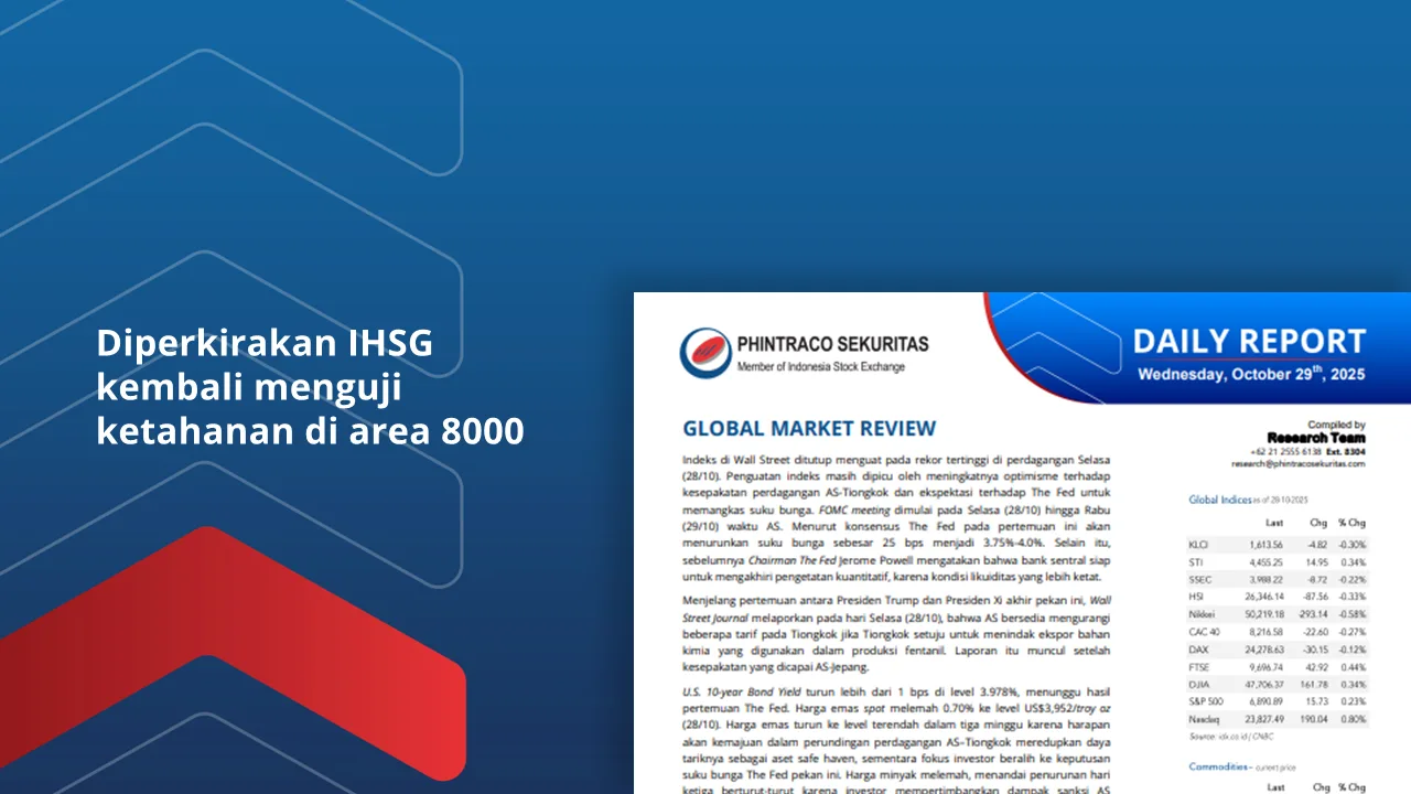 Indeks di Wall Street ditutup menguat pada Senin (20/10). Ekspektasi akan earning season 3Q25, harapan segera berakhirnya shutdown, serta meredanya ketegangan perang dagang AS-Tiongkok, telah menjadi faktor positif. Presiden Trump...