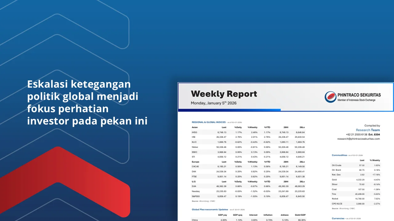 Indeks di bursa Wall Street ditutup menguat pada pekan lalu. Kenaikan indeks terutama didorong oleh saham-saham sektor keuangan dan industri. Harga emas mencapai level tertinggi baru di US$4,530/troy oz, ditopang...