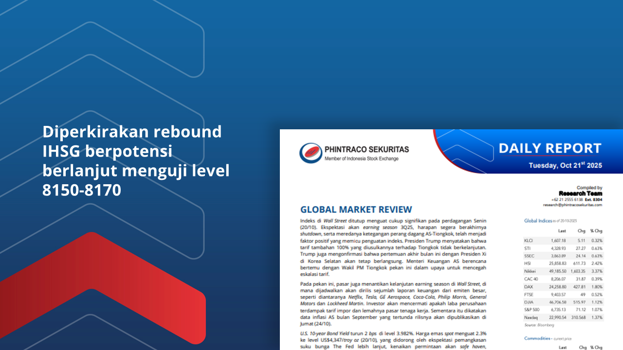 Ekspektasi akan earning season 3Q25, harapan segera berakhirnya shutdown, serta meredanya ketegangan perang dagang AS-Tiongkok, telah menjadi faktor positif.