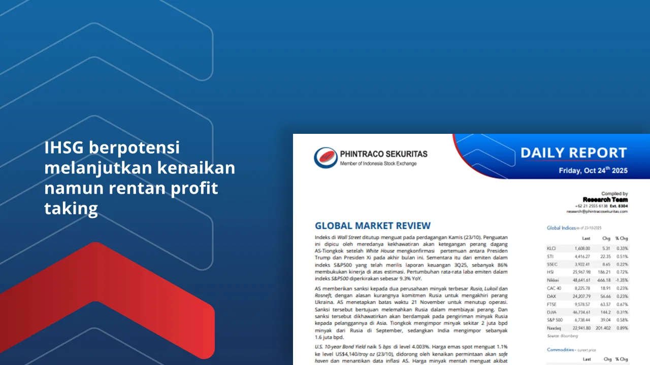 IHSG diperkirakan berpotensi melanjutkan kenaikan menguji level psikologis di 8300, namun perlu diwaspadai potensi pullback jangka pendek karena profit taking pada akhir pekan.