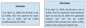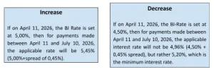 BI Rate (4,75%)+spread 45 bps (0,45%)
